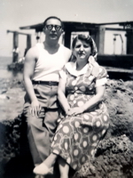 Derrière Marc, on aperçoit la plage qui était à quelques mètres, mais aussi l’un des poteaux de l’ancien embarcadère où Rogelio, le papa d’Armand, suspendait au palan le bateau qu’il avait acheté en même temps que la maison, en 1942. Sur les photos, comme souvent, Marcel est en débardeur blanc et pantalon avec ceinture moire, mais Thérèse et Arlette ont de belles robes d’été et Arlette a très vite retrouvé sa taille fine de jeune fille. Et, bien sûr, la Grand Mémé est vêtue d’une longue robe noire ; jamais, il semble qu’elle n'ait porté une autre couleur.